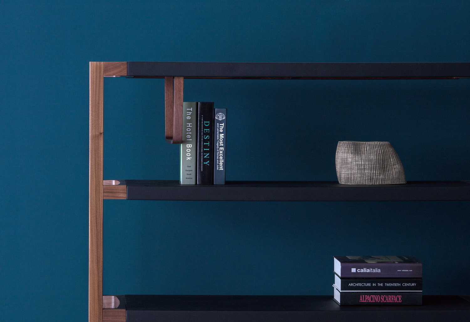 シェルフはミニマルですっきりとしたデザインで見通しがよく、空間の仕切りとしても適しています。 人のニーズを十分に考慮した設計で、各層の間のスペースは、一般的なサイズの本や装飾品を収容することができ、レザーに包まれた横板は、摩擦力が増し、全体的な雰囲気もより高級になります。 また、自由に調整できるブックエンドが装備されており、本のサポートとして使用することができます。