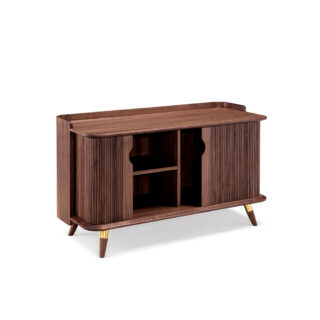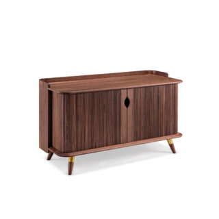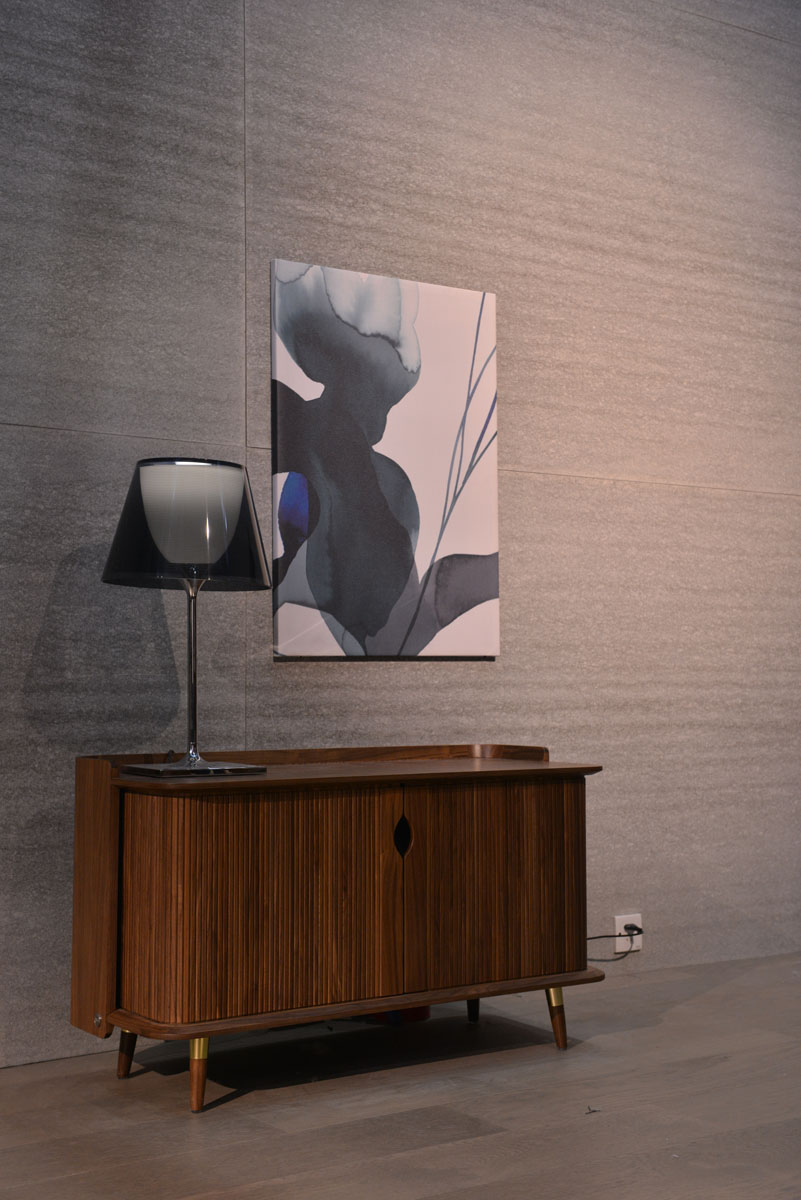 KERRY UNIT キャビネット最大の特徴は、古代中国の筆記・記録用具である竹簡にインスパイアされました。キャビネット本体のカーブに沿ってスライさせて開閉する構造になります。開ける時、レールに沿って内部までスライトし、収納空間のスペースを取りません。古代の魅力を持つスライドドアのデザイン、そして厳選された材料によって作られたこのキャビネットはとても文化の深さを感じさせてくれます。