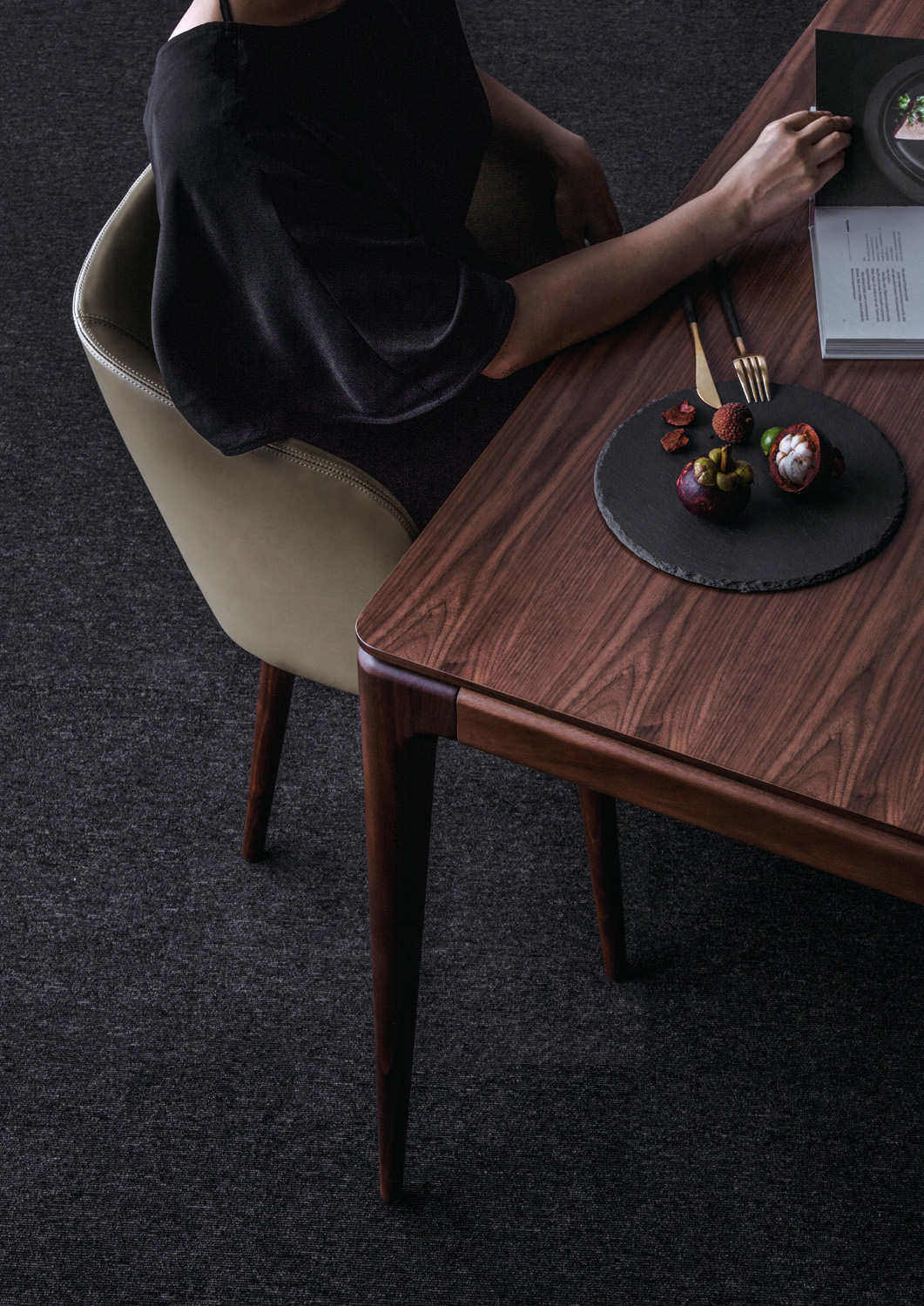 Kerryダイニングテーブルは天板表面の木目の選定が非常に厳しく、傷や乱雑な木目のもの全て除きました。使用している材料はどれも丁寧に選ばれたもので、素材そのものの言葉を最大限に表現させ、時間がたっても価値がある一生物になります。