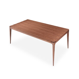 テーブル全体的な構造は、椅子のフレームによく似ています。究極のシンプルさで、立体的にカットされた脚は、上から下へ、緩やかに収縮し、いくつかの側面を通じて、天板の設計と、フレームとの分離感が、視覚的な軽やかさと安定性を両立しています。