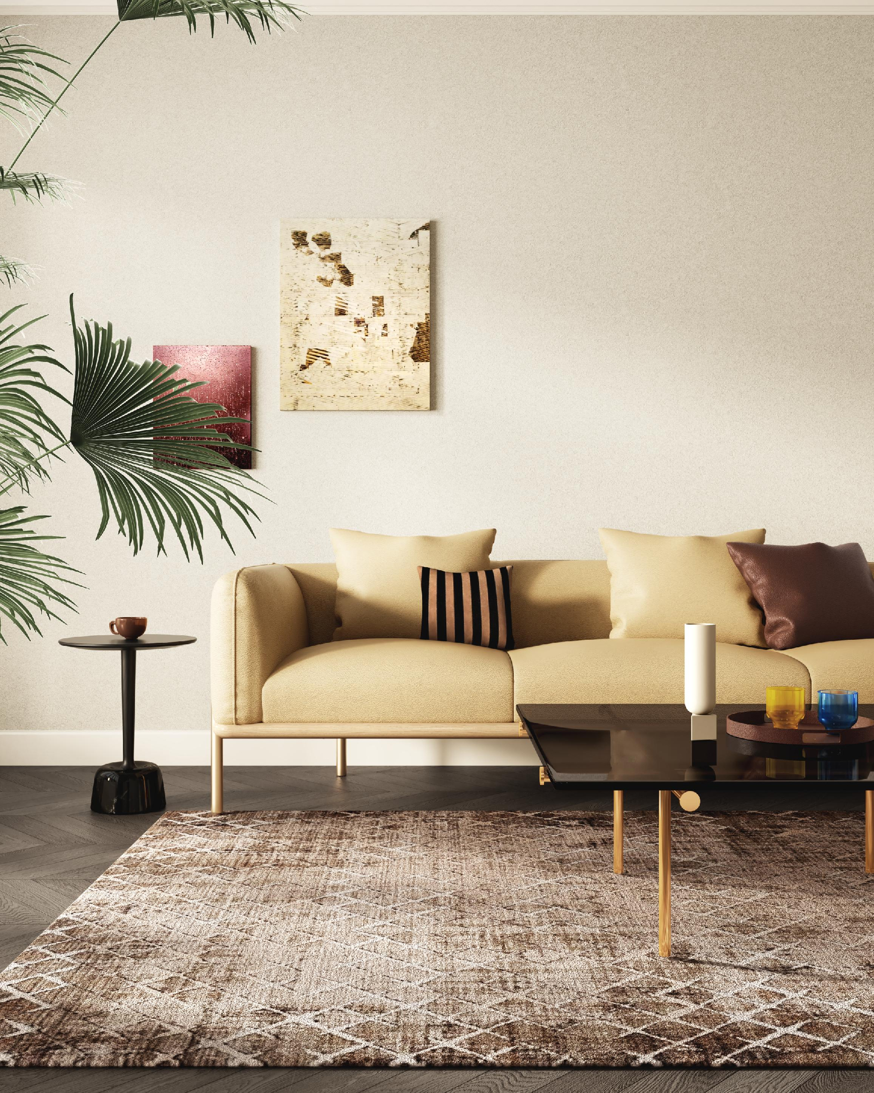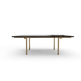 角を磨き上げて丸く処理したため、四角いシルエットでありながら重量感を和らげ、優しい印象に。天板に用いたブラック&ゴールド大理石の、織りなす芸術的な模様が格調を高め、ブラスゴールドの脚部の柔らかな曲線が、上品で温もりある雰囲気を添えます。ソファに合わせて単体で使うことも、複数を組み合わせて配置することも可能。柔軟なアレンジで空間を彩ります。