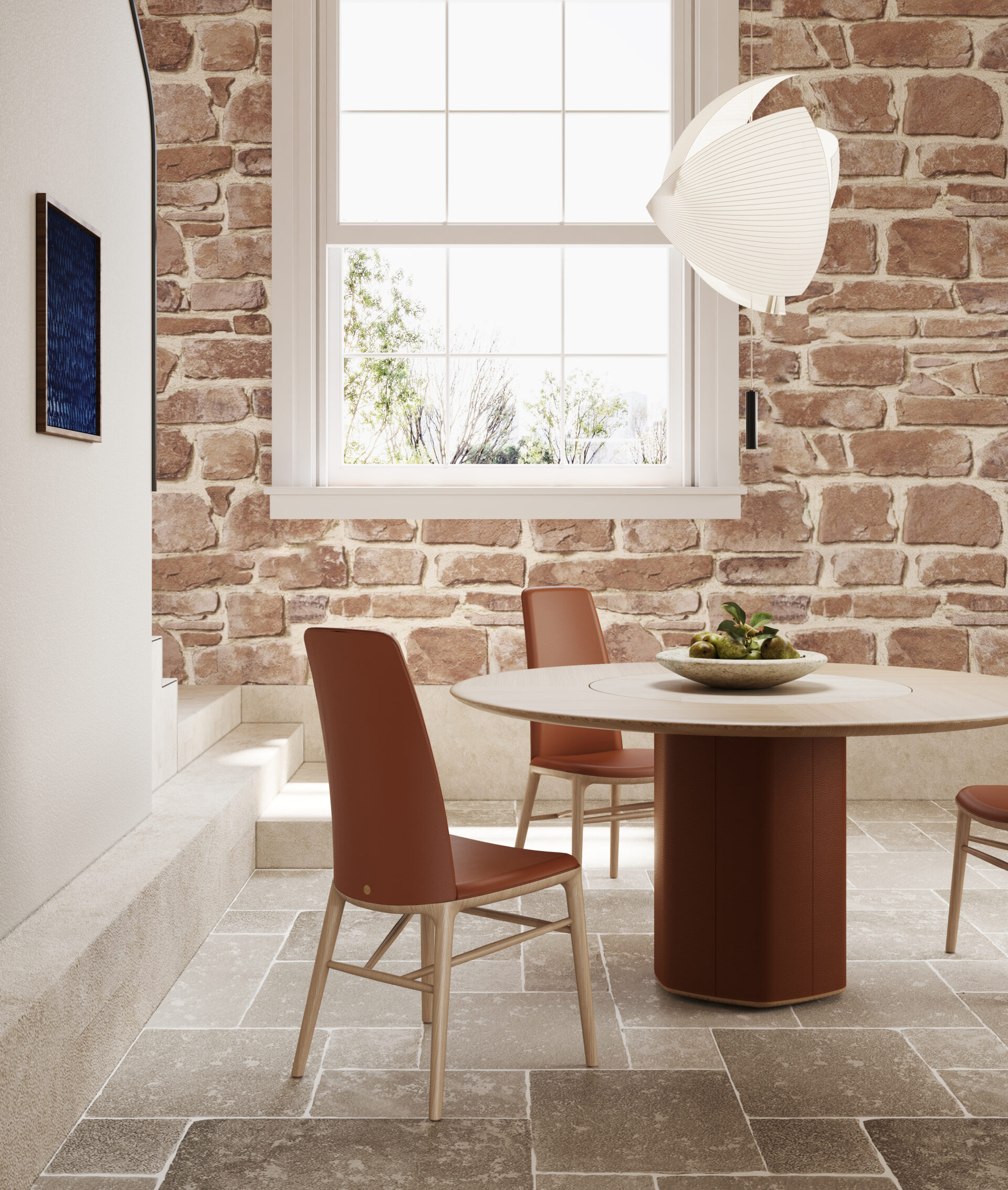 清らかな自然のエレメントを視覚的なつながりとし、「体の優雅さ」と「心のくつろぎ」を、製品に宿る見て感じられるライフシーンへと描き起こす――都会に身を置きながらも、自分だけの小さな世界を手に入れ、自分と深く溶け合う穏やかな安らぎを味わう。 Natura ナヤ円卓のデザインは極めて簡素で風格あふれ、視覚の中心を意図的に占めることなく、ハイクラスな体感を細部から伝えています。卓面の縁には緩やかなカーブラインを彫り上げ、まるで自然な流れの水が描き出したような調いで、玉のように潤いのある視覚的なイメージを醸し出しています。卓柱は六角形のフォルムで構成され、円やかなカーブで一体に連なっている。味わい深い観賞性を生み出すと同時に、調和、円満、幸福といった美しい意味を伝えています。
