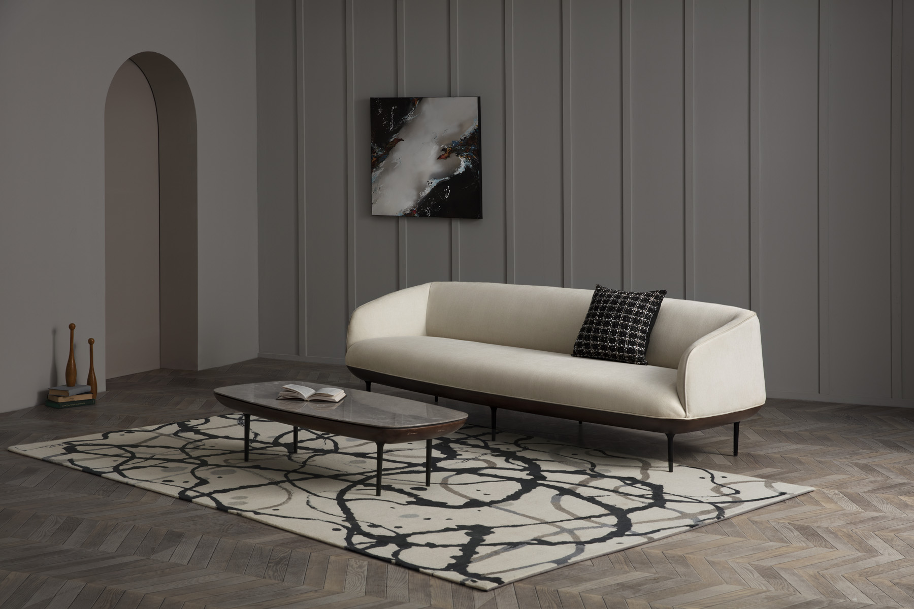 波と砂が紡いだ小石からインスピレーションを得て、その名を冠しました。自然が生み出した温もりある造形を再現し、流れるような有機的な曲線と精緻なシルエットプロポーションを融合。滑らかで柔らかな立体形象を創り出しています。住宅、ギャラリー、オフィスなど多様な空間に溶け込み、ミニマルな直線構造の家具とも、大胆な曲線デザインの家具とも調和。さらに、多様な素材とカラーバリエーションをご用意し、個性ある表現にもお応えします。
