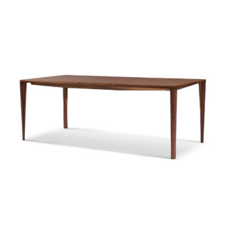 ダイナミックな線の造形が、立体感のあるデザインの中で木のフレームの美しさとスタイリッシュさを放っています。天板と脚の一体化で、すっきりとしたシルエットを実現。各部に施された微妙な傾斜が、木材の天然の風合いを鮮やかに浮かび上がらせます。