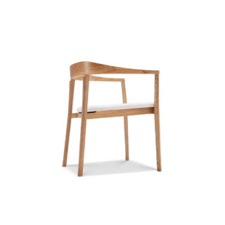 中国宋代の円椅からインスピレーションを得て、現代的なデザイン言語で東洋の古典美を再解釈しました。流れるような一体型のラインが背もたれから自然に肘掛けへと伸び、優雅に包み込むシルエットを形成しています。無垢材の曲木工法が、しなやかでありながら力強い造形を描き出します。チェアのボディには一つひとつの曲線に職人の手作業による丁寧な研磨が施され、伝統的な指接ぎ工法の精密さと温もりを受け継いでいます。座面にはソフトクッションを採用し、身体にフィットする快適な座り心地を提供します。