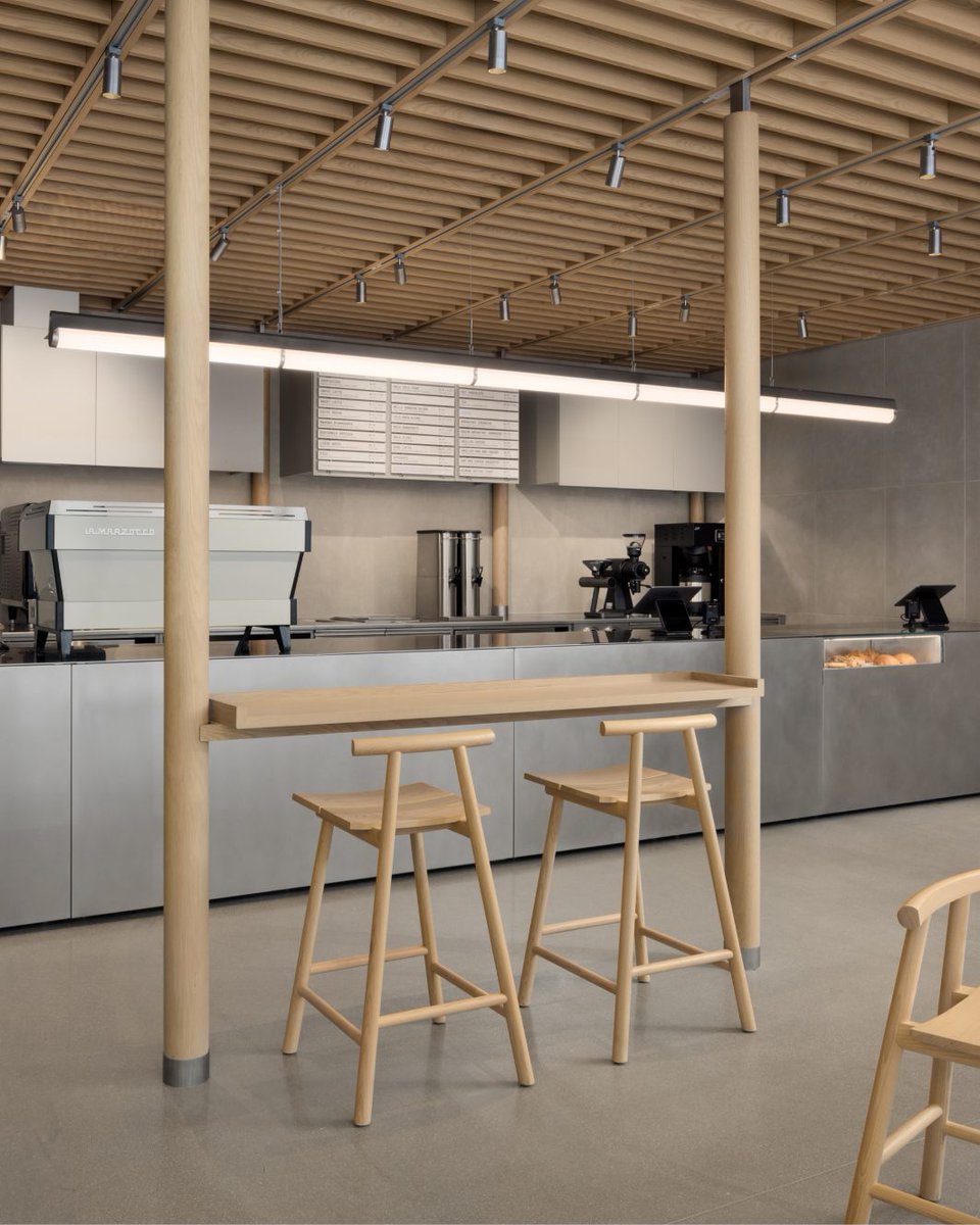 Blue Bottle Coffee はカスタマーエクスペリエンスの構築において、コーヒー調製の儀式感と空間の開放感を重視し、店舗空間と製品のデザインもこのコアを軸に展開されています。Mexarts Contract が店舗向けに家具製品をカスタマイズし、製品のデザインフォルムと素材の質感を緻密に表現することで、ブランドの価値理念とイメージメモリーを伝達しています。