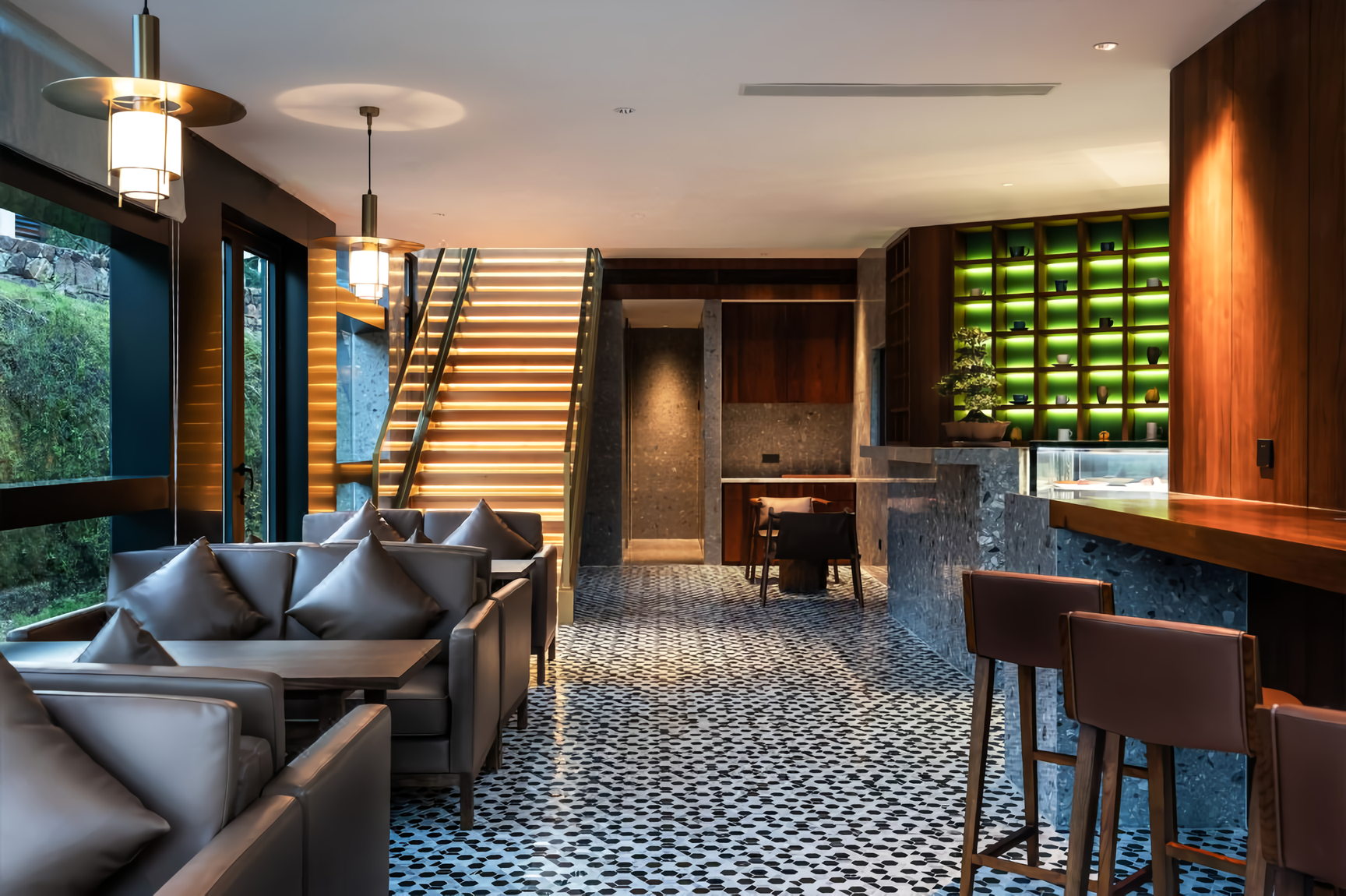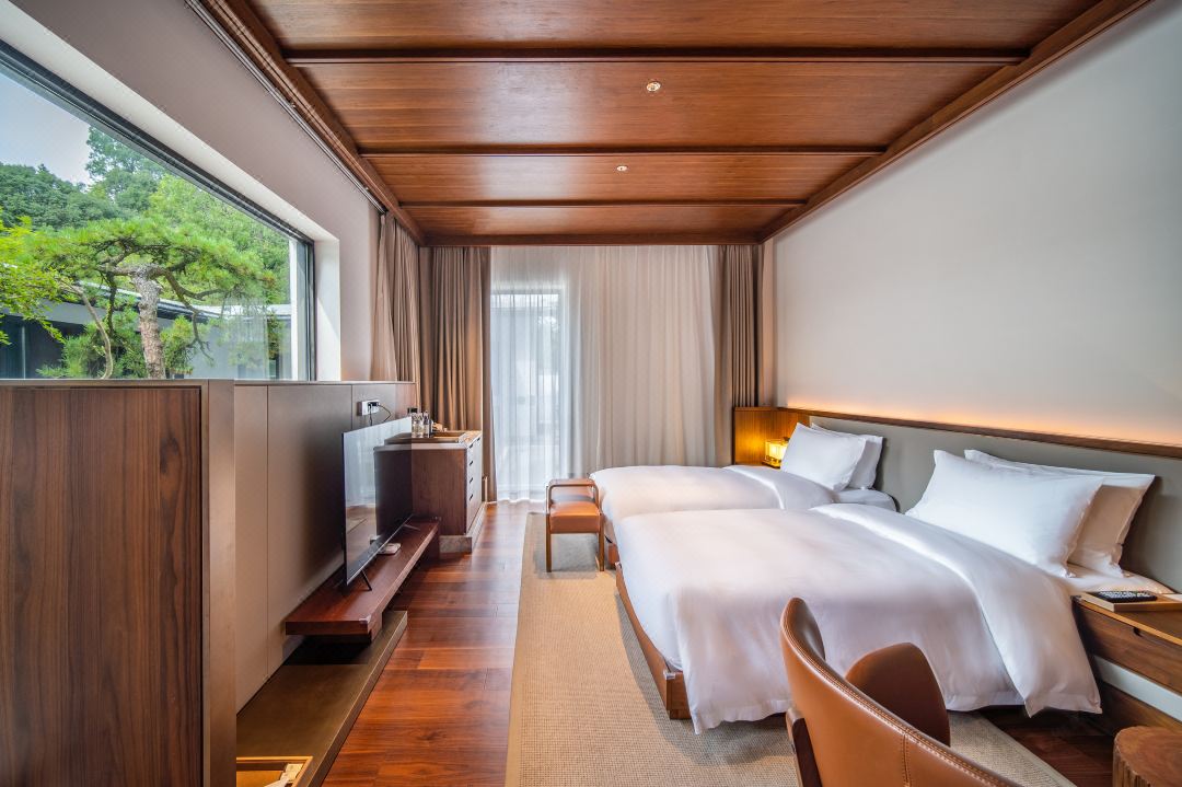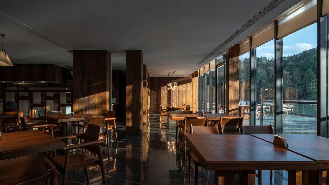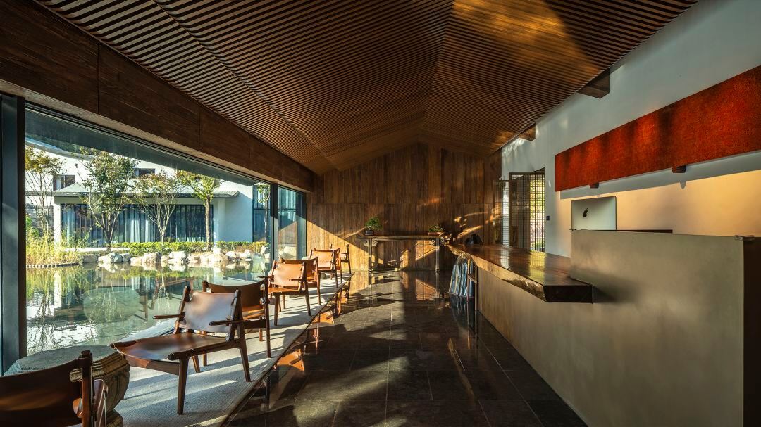 黄山山景区にある18,500平方メートルの敷地に建てられた当ホテルは、花や木々に囲まれた山野にひっそりと佇む隠れ家的な宿泊施設となるよう、6年かけてデザインに磨きをかけてきた。