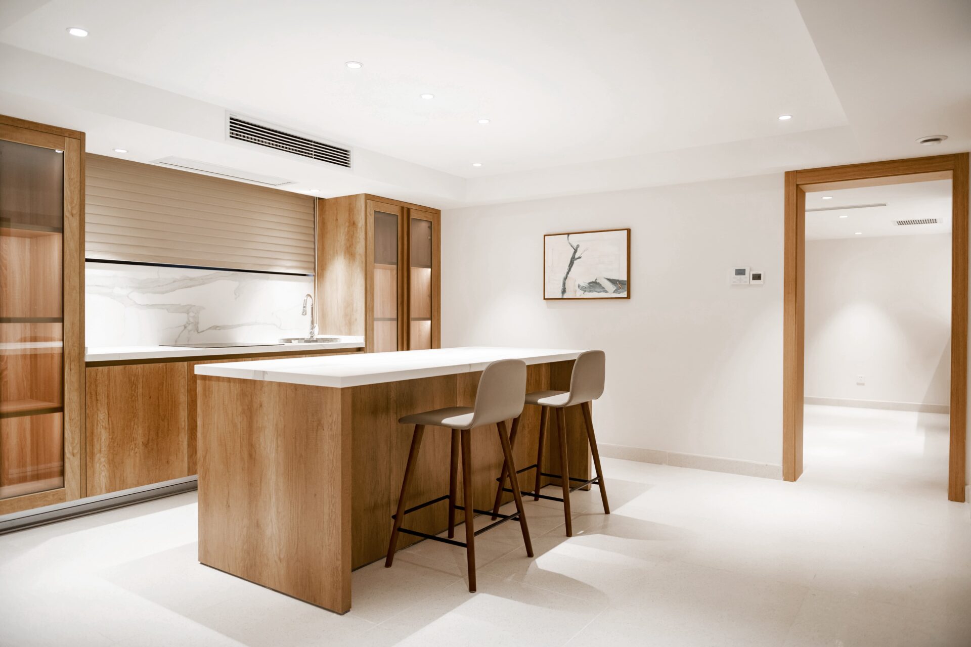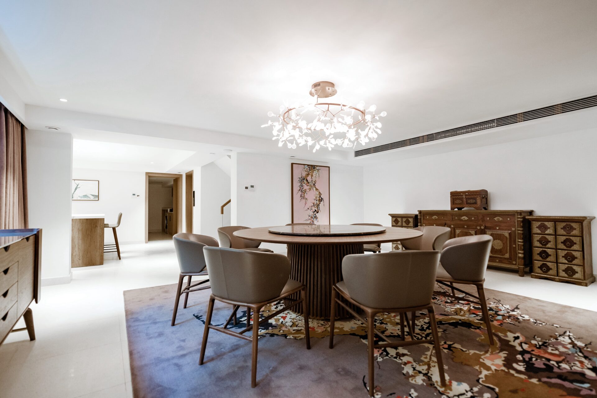 銀都名墅は、上海市中心部に近接する数少ない大規模ヴィラ区の一つです。 当該ヴィラの全体的なトーンはホワイトを基調とし、クルミ材の木目色をアクセントとしています。落ち着いた、ミニマルで質素な色彩により、穏やかで平和な雰囲気を呼び起こすことを目的としています。家具と中国風オブジェの融合は、ミニマルでクラシックな空間に一抹の中国らしい要素を加え、空間全体のアクセントポイントとなるとともに、永遠に輝くクラシックな風格を放っています。